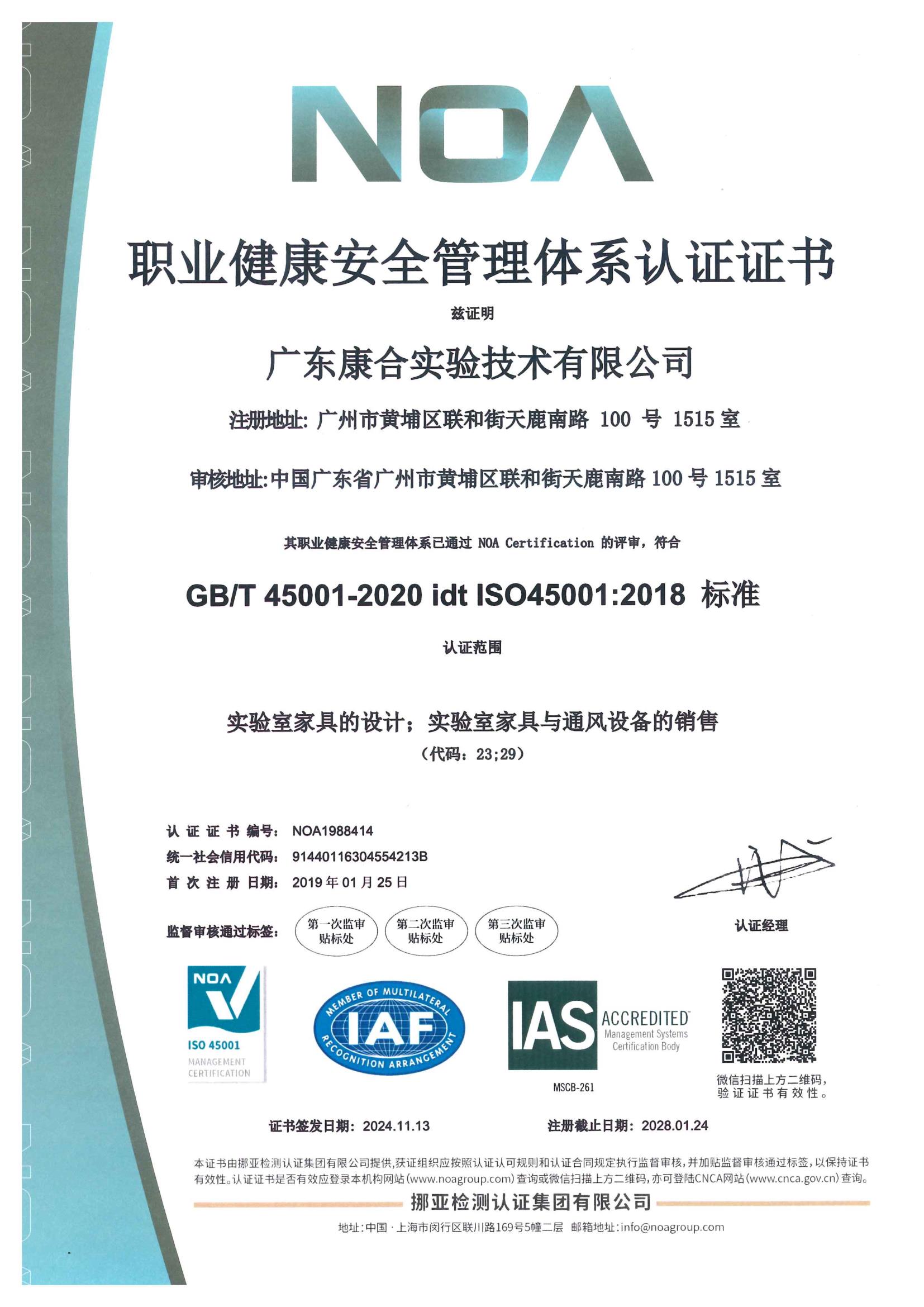 康合憑借雄厚的實驗室設(shè)計實力、規(guī)范的實驗室施工流程以及優(yōu)良的服務(wù)質(zhì)量,通過了ISO9001:2015質(zhì)量管理體系、ISO14001:2015環(huán)境管理體系、BS OHSAS18001:2007職業(yè)健康安全管理體系等多項國際體系認證,擁有多項實驗室裝備行業(yè)的專利技術(shù)。